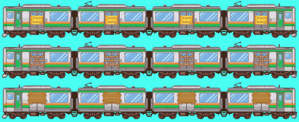 1 4 電車 詳しくないので資料を見て作成 説明しないと分からない差分を作りすぎた感があります #ドット絵 #pixelart 18/09/18 12:14