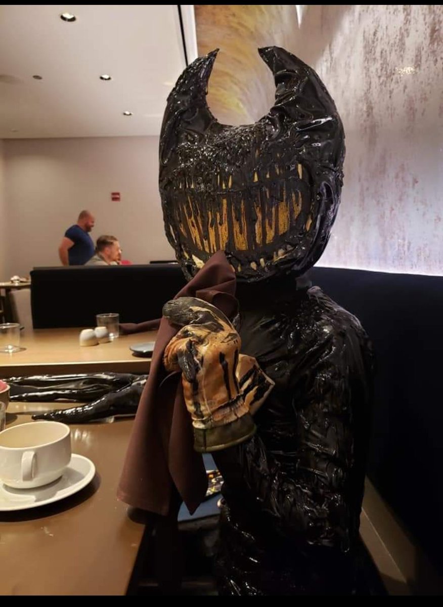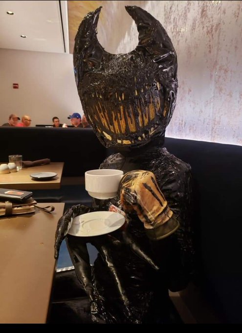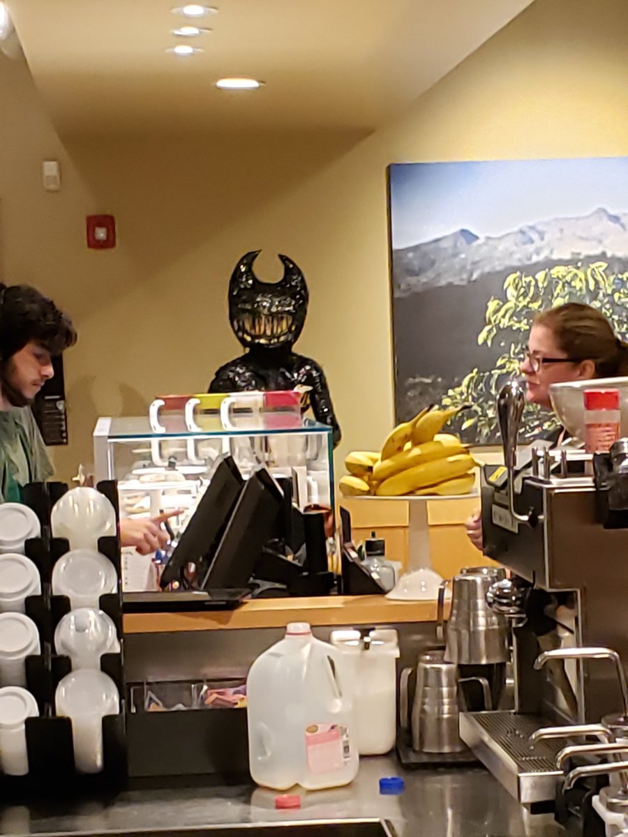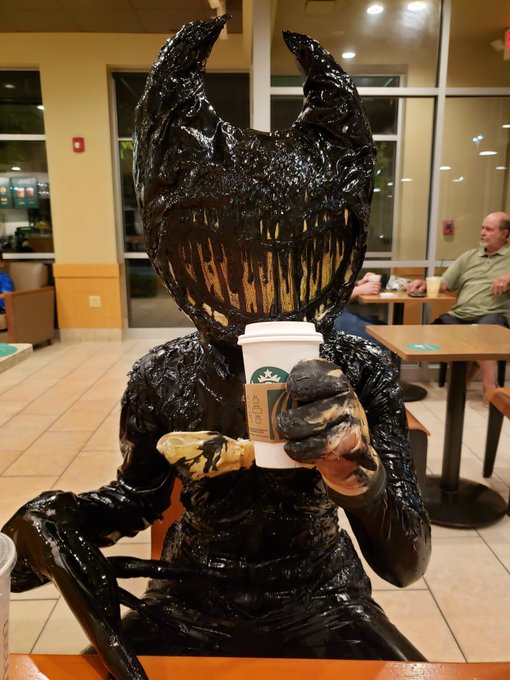 Day out with the Ink Demon pt3(at my starbucksjob) photos by @FelineRye @Bendy #bendy #Cosplay #Bendy_and_the_ink_machine
