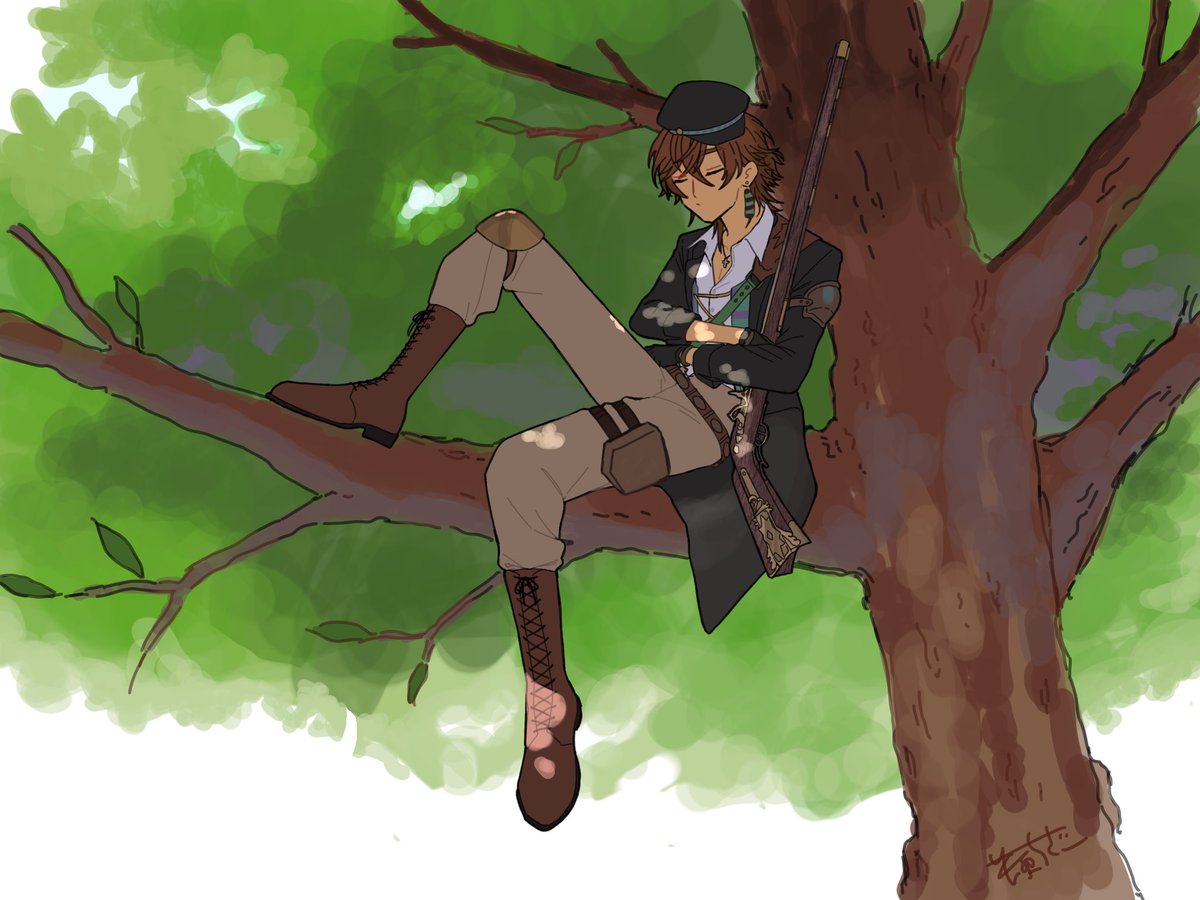 木の上で寝る人……(そのまま落ちてくる) #1014R_FA