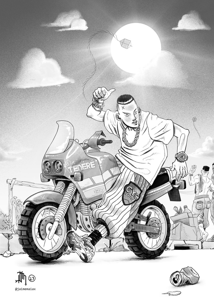 Agora foi! Quem puder fortalecer no like e RT, agradeço demais ✨🙏🏽 ////////////////////////////////// Domingo ✦ Tipo Falcão ✦ Atento #illustration #art #drawing #halftone #drawing #opreçodatreta #wip #workinprogress #timelapse #tenere #tenere600 #yamaha