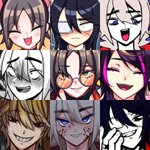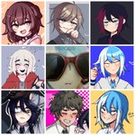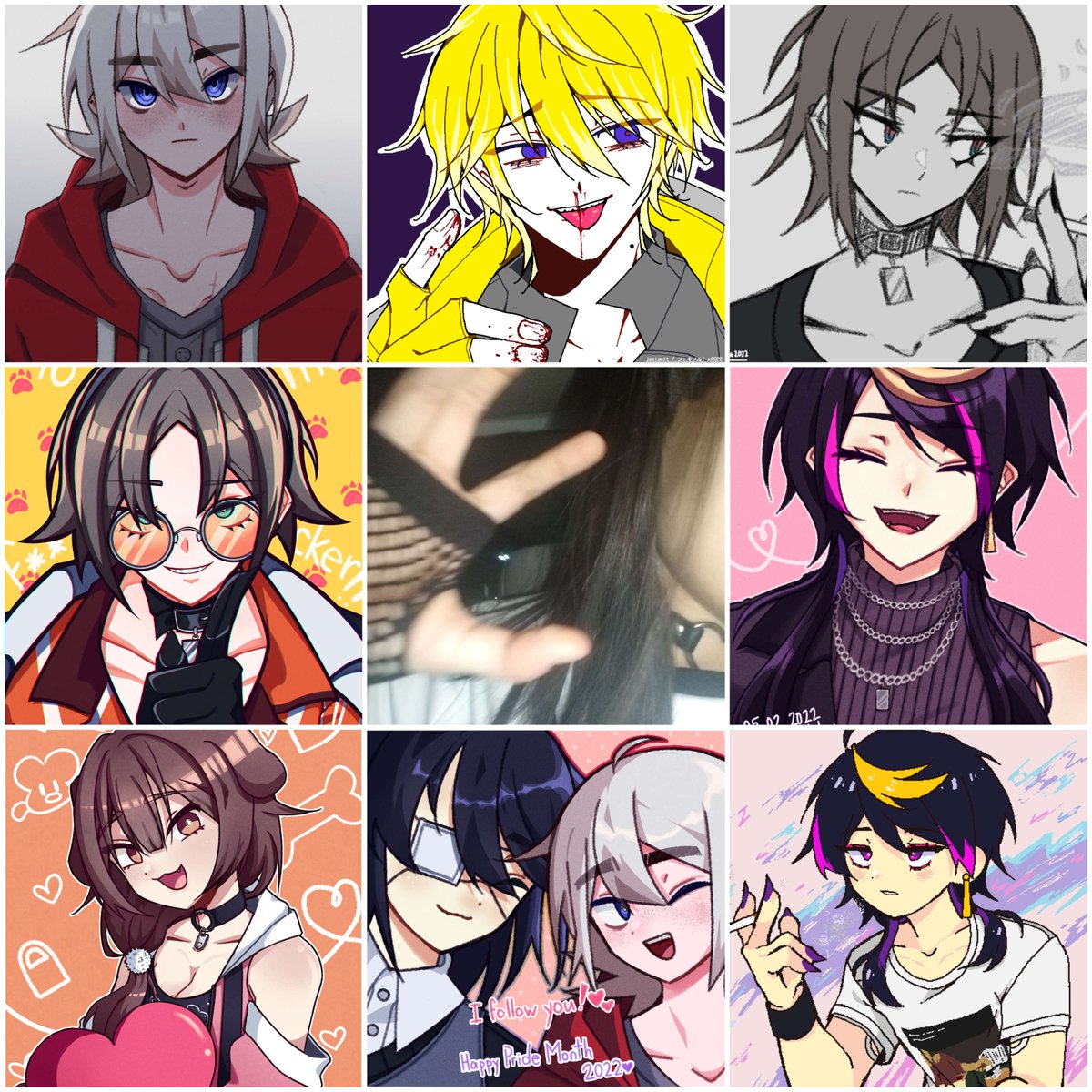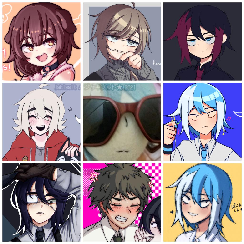 #artvsartist2021 this year I won't show my face, so have a picture of my poiyo plushie with glasses on instead every row is a different art style. all of these are my fav drawings from this year :3