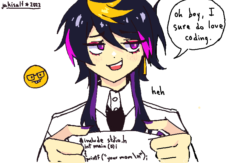 a coding joke between luxiem guys today is also luca's birthday too! ☺️💛 #MystArt #drawluca #YaminoArt #Akurylic #Ikenography #Luxiem