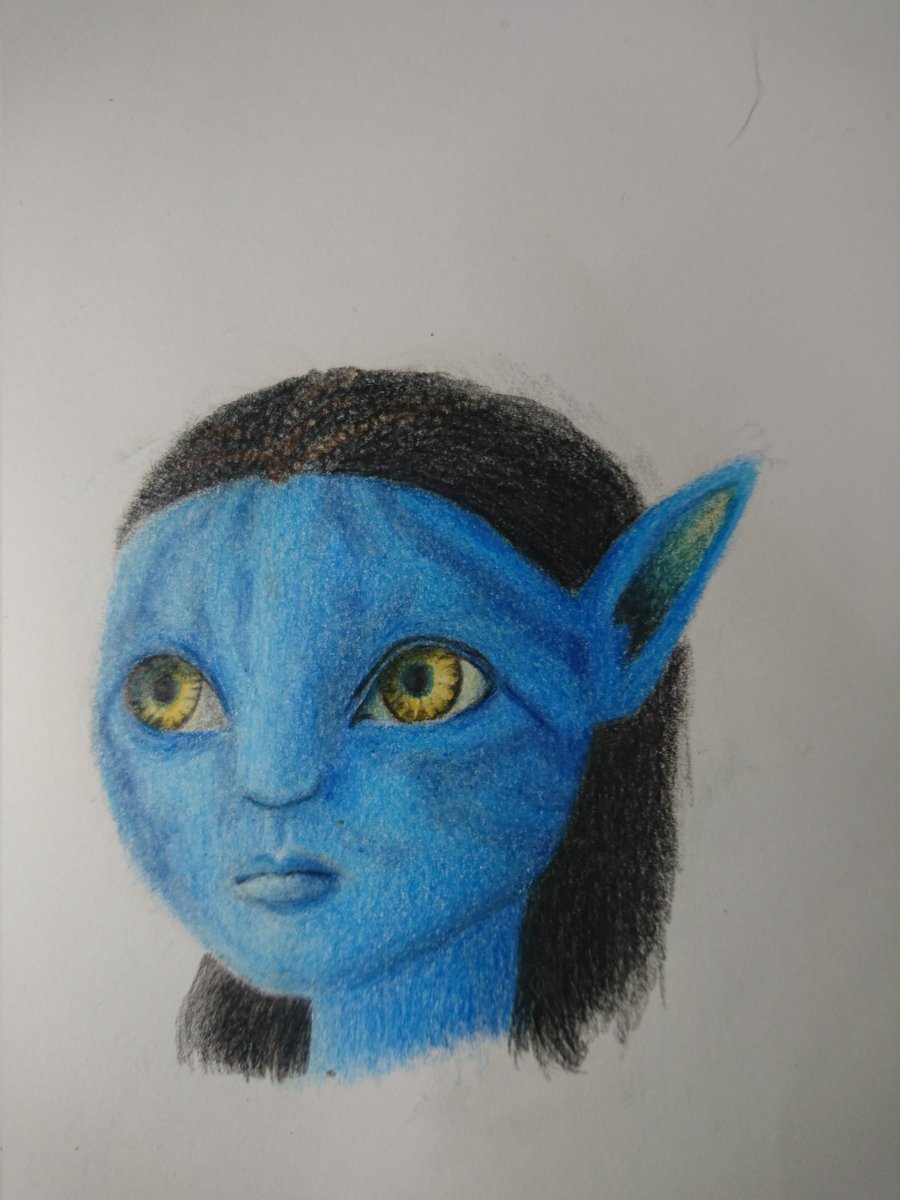 #アバター #猫 #色鉛筆画 アバターを観に行って、やっぱりナヴィの顔は猫科だなぁと思い、猫にアバターになってもらいました