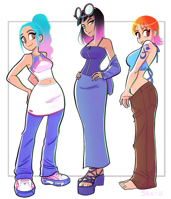 I was drawing clothes from the 90's and I ended up drawing girls from one piece . . . #ONEPIECE #Nami #nicorobin #robin #90s #outfit #clothes #manga #fanart #vivi #namionepiece #robinonepiece