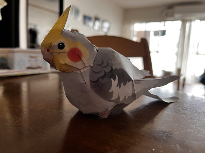 #ペーパークラフト 普通コピー用紙で作った ぐちゃぐちゃだけどできたよぉ〜🤣(裏側は見ちゃダメ) #オカメインコ