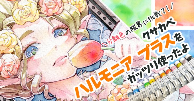 【更新のお知らせ】 ハルモニア プラス記事、出来上がりました! watercolor-try.com/kusakabe-harmo… 今回もメーカーの方の開発秘話ありです! 開発の風景が目に浮かぶような内容でした。 分離色を使ったキャラクターイラストを塗るときの試行錯誤&コツも入っています!