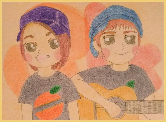 永井真理子(@nagai_mariko)さん、長井ちえさん、34回目のデビュー記念日おめでとうございます。生配信ワクワクしながら待ってます🍊 #永井真理子 #長井ちえ #イラスト #色鉛筆