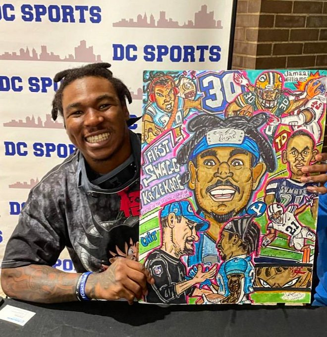 I haven't seen Tyrone Wheatley in person since the hallways of Robichaud high school. It was really cool to see him and chat with him for a few. Another Awesome event at @ProSportsZone1 Thanks John Yu, You're the best buddy. #FanArt #RobichaudBulldogs #MichiganFootball