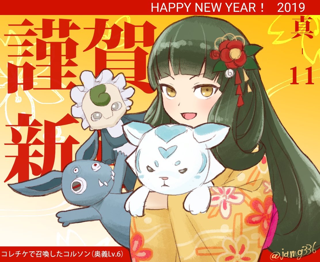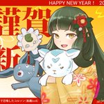65 152 コレチケはコーちゃんでした。せっかくなのでお正月仕様で #コレチケで召喚した〆の絵を描く 19/01/02 22:25
