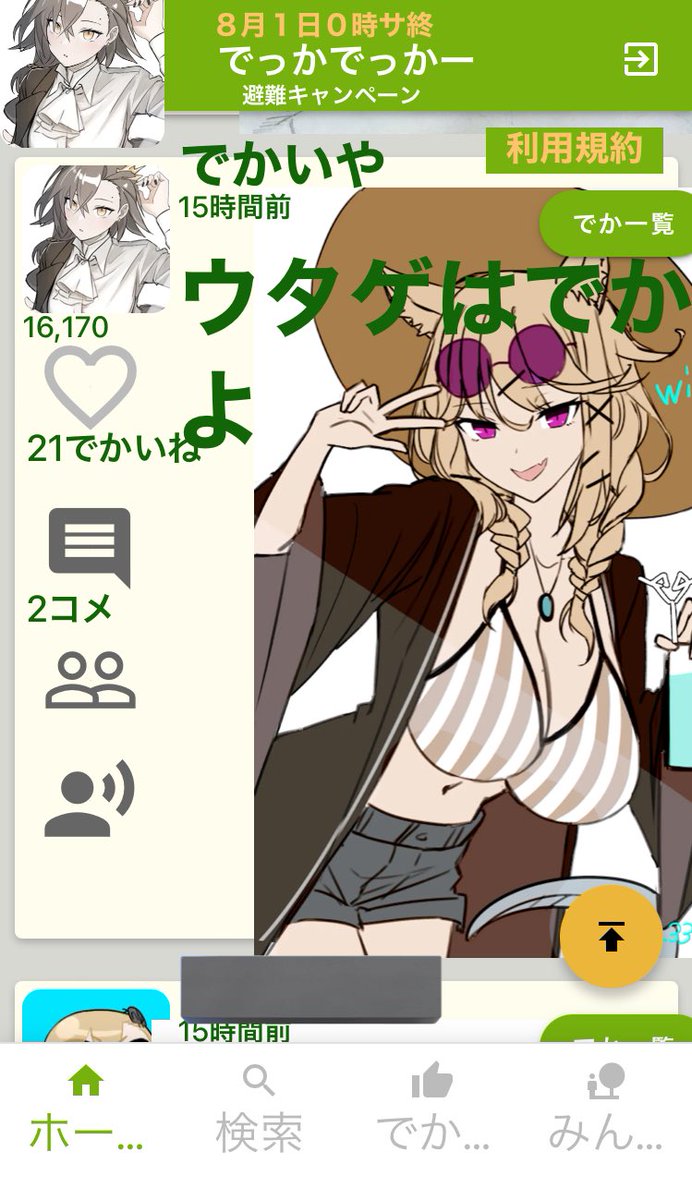 52 167 めろん22先生がRTしてくれたみたいなのででっかでっかーの宣伝🍈 8/1にサ終予定だけどめちゃくちゃでかくていい所です!API制限もない!でかい! あと感謝のデカウントちゃんFA🍈 23/07/06 15:16