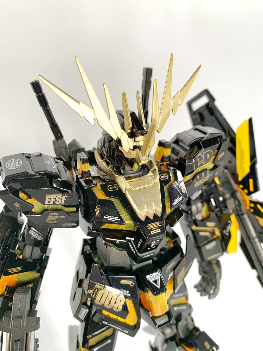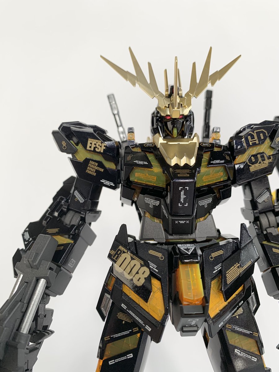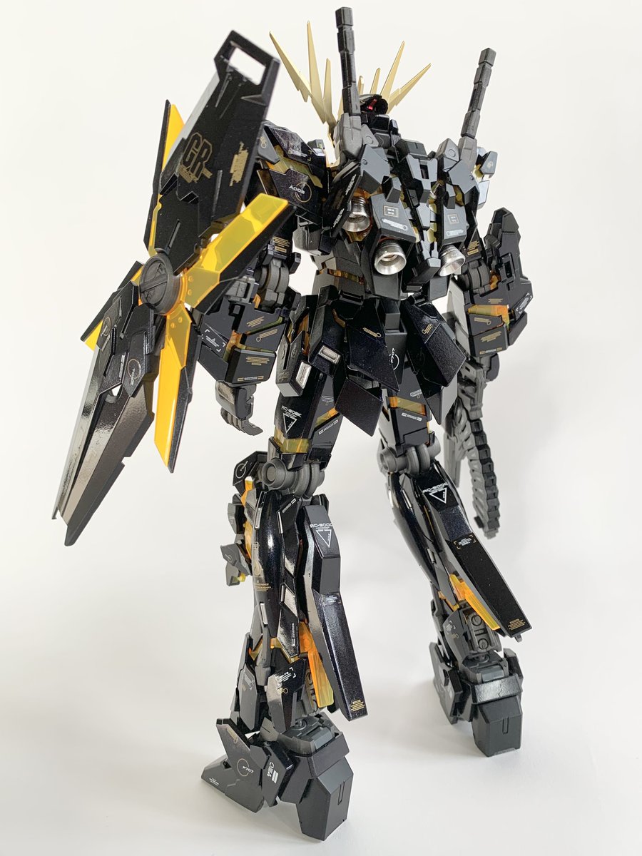 MGバンシィめっちゃよくできた!プリズムブルーブラック、デカール盛り盛り!#ガンプラ好きと繋がりたい #ガンプラはどんな自由な発想で作ってもいいんだ #ガンプラの画像貼るとRTされると聞いて #バンシィ #MGバンシィ #banshee