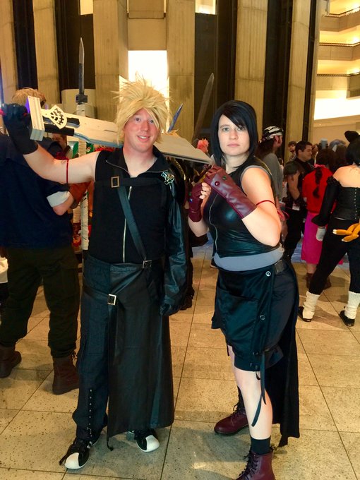 Flashback Friday to us at @dragoncon cosplaying as Cloud and Tifa from Advent Children. K repurposed some of hers from goodwill items to make her Advent Children Tifa. #ff7#cosplay#authors