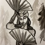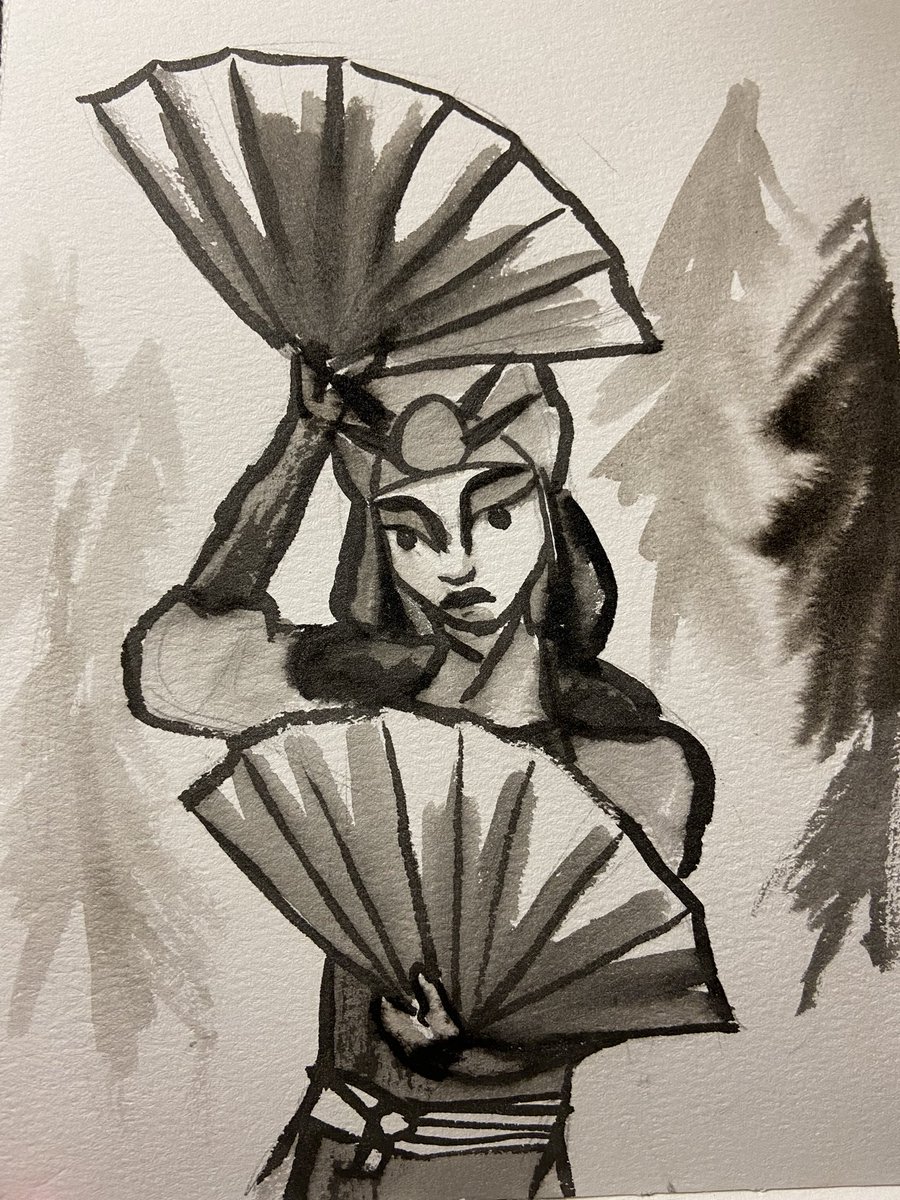 Inktober Day 7: Fan. Sumi e style painting of a Kyoshi warrior. #inktober2021 #inktober #kyoshiwarrior #atla #avatarthelastairbender #art