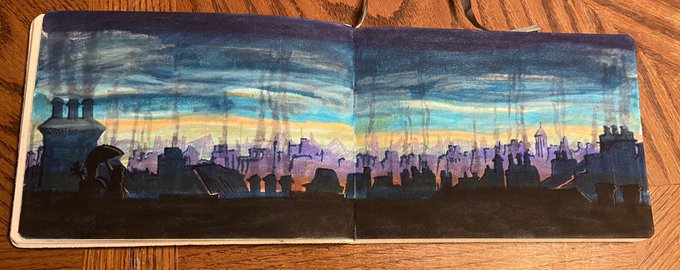 Inktober day 13: roof. Up where the smoke is All billered and curled 'Tween pavement and stars Is the chimney sweep world. #inktober2021 #art #inktober #marypoppins
