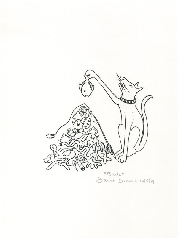 Inktober, Day 5, October 5, 2019, prompt word 'Build' #inktober #inktober2019 #ink #penandink #higginsink #cat #linedrawing #lineart #build