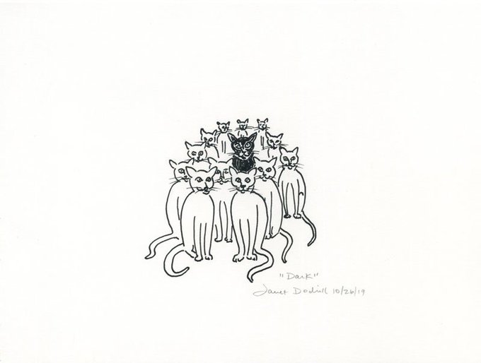 Inktober, Day 26, October 26, 2019, prompt word 'dark' #inktober #inktober2019 #ink #penandink #higginsink #cat #linedrawing #lineart #dark
