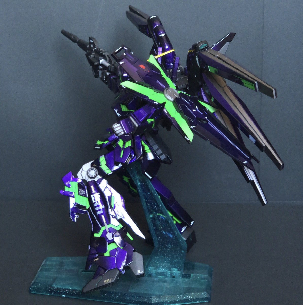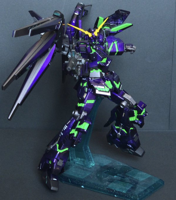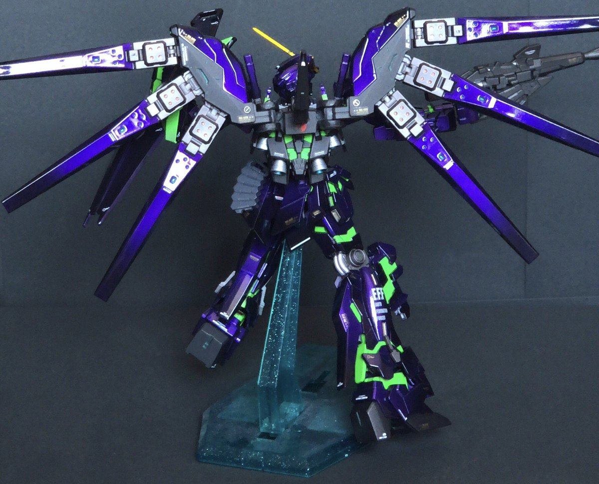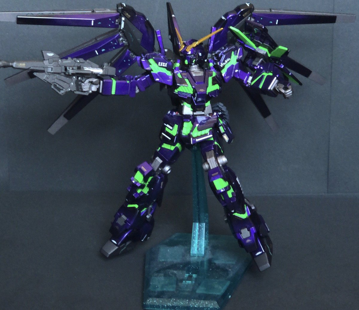 HGユニコーンガンダム エヴァver ファンネル付き 残業ばかりで完成に1か月かかってしまった😩でも納得のいくできにできました🤔 #ガンプラの画像を貼るとRTされると聞いて #ガンプラ好きと繋がりたい #ガンプラ塗装