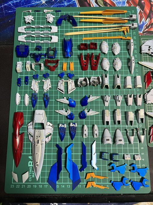 こうやってパーツ並べるとなんかいいなぁ。何作っているかはプラモデラーの先輩方はわかりますよね😆これからデカール貼り頑張ります‼︎ #ガンプラの画像貼るとRTされると聞いて #ガンプラ好きとつながりたい