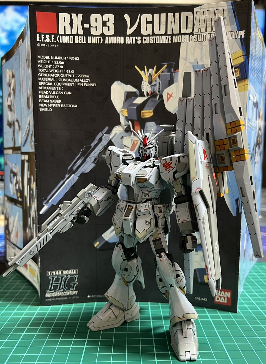 HGνガンダム 完成しました‼🎉︎MGやRGに見えるように作ったつもりなんですけど大変だった。しかしやっただけの成果は出てると思う😆 全塗装するとファンネル重すぎて仰反るのが難点です😅 #ガンプラの画像を貼るとRTされると聞いて #ガンプラ好きな人と繋がりたい