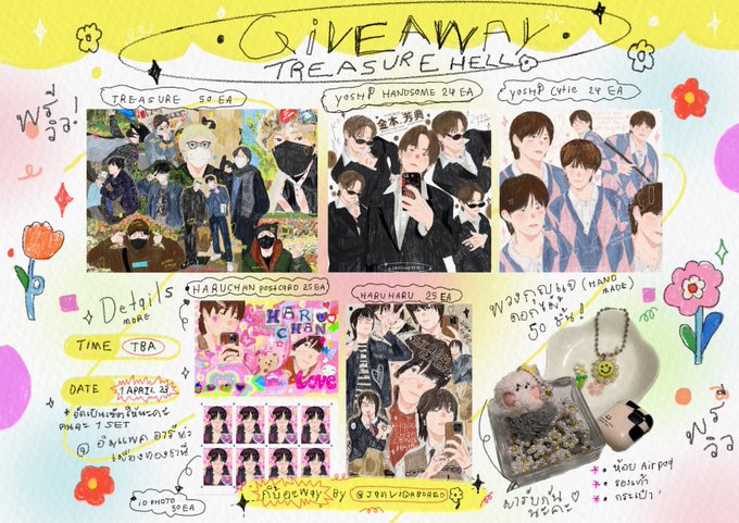 ✳︎ Give away ✿ 𓈈 𓂂 𓏸 יִ ◞ Postcard treasure 50 ea Postcard & id photo ( haruto ) 50 set (pc + id ) Postcard yoshi 48 ea Keychain ⸝⸝ ✿ 50 ea date : 1 april ,23 location : Impact arena time : tba 🌳: please kindly retweet #TREASURE_hello_in_bangkok #janvigoods