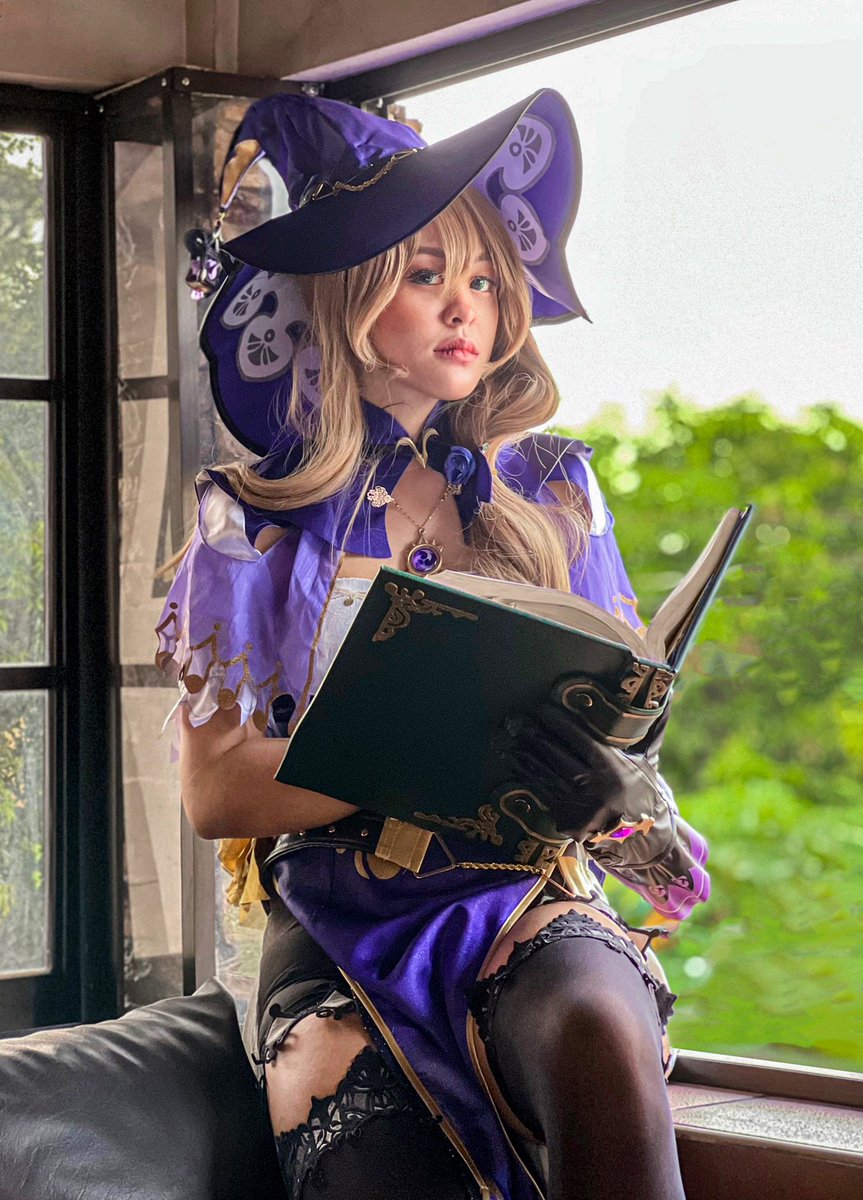 “Today’s no good for going out… Hmm… Did I say that yesterday as well?” Lisa Minci from Genshin Impact 💜 Wig & Costume: SS Cherry @ Fb #shotoniphone #genshinimpact #cosplay #lisaminci