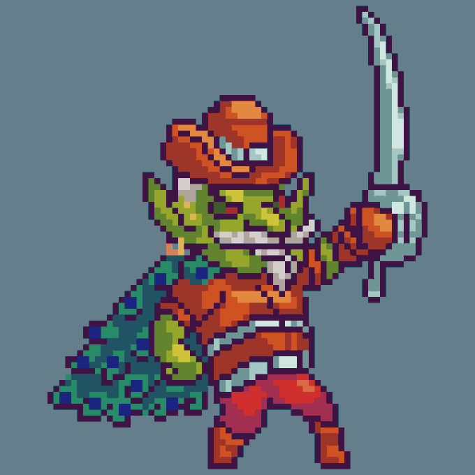 Goblin week 2, despite the fact that my booster shot is kicking my ass! Here's Mon, he's sorta based on my dad :P #pixelart #goblinweek #ใใใ็ตต