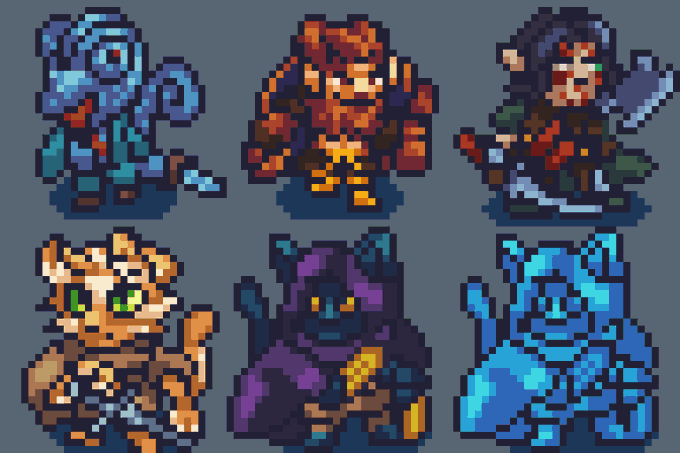 Party tokens for the ICON one shot! Fool, Colossus, Demons Slayer, Spellblade and Shade PCs! #pixelart #ttrpg #ใใใ็ตต