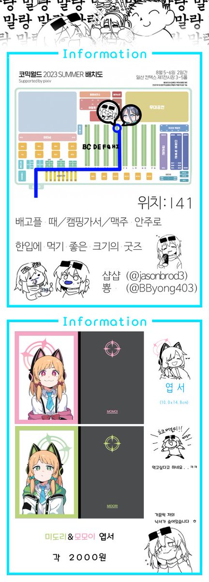 [서울코믹월드] 양일 I41의 지배자인 제가 <키보토스최고의 말랑..,,> 의 인포를 전해드리겠습니다. @ BByong403 작가와 함께 나갑니다 결제수단은 현금과 계좌이체입니다 수험생의 집중력 증진과 기력증진에 효험이 있습니다. 한입거리 사이즈로 우리아이 술안주에 완벽합니다.