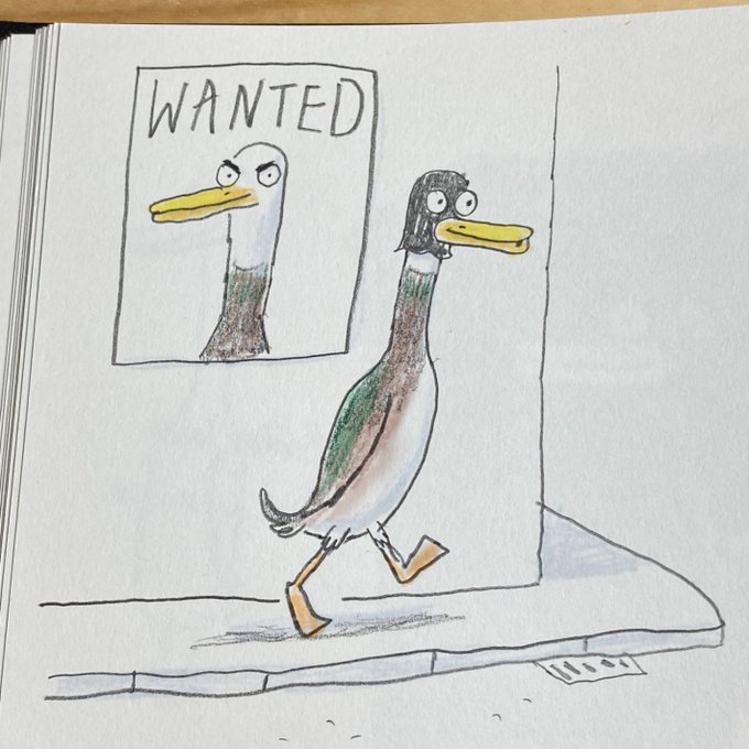 WANTED! El Quacko. Master of disguise. Nicknamed ‘Duck of a Hundred Faces’, He’s currently on the run after breaking out of Duck House Penitentiary and heading to the border. #kidlitart #illustration #crimeillustration #indianrunnerducks #picturebookillustration #workinprogress