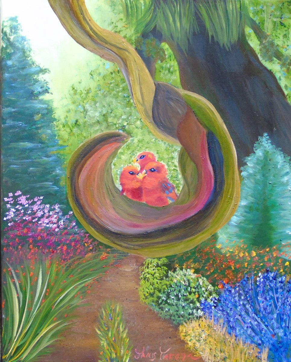 janistafoya.com #lovebirds #dancingbears #hybiscus #gifts #original #oil #forest