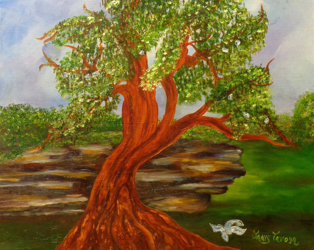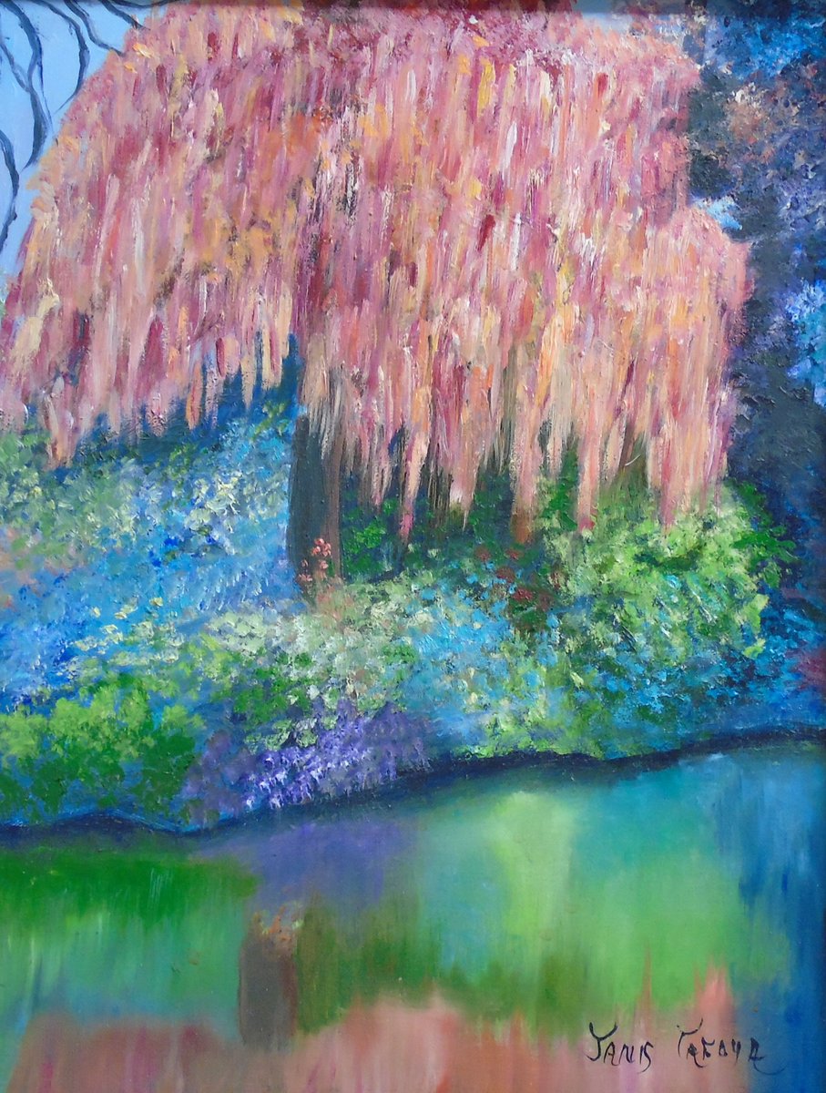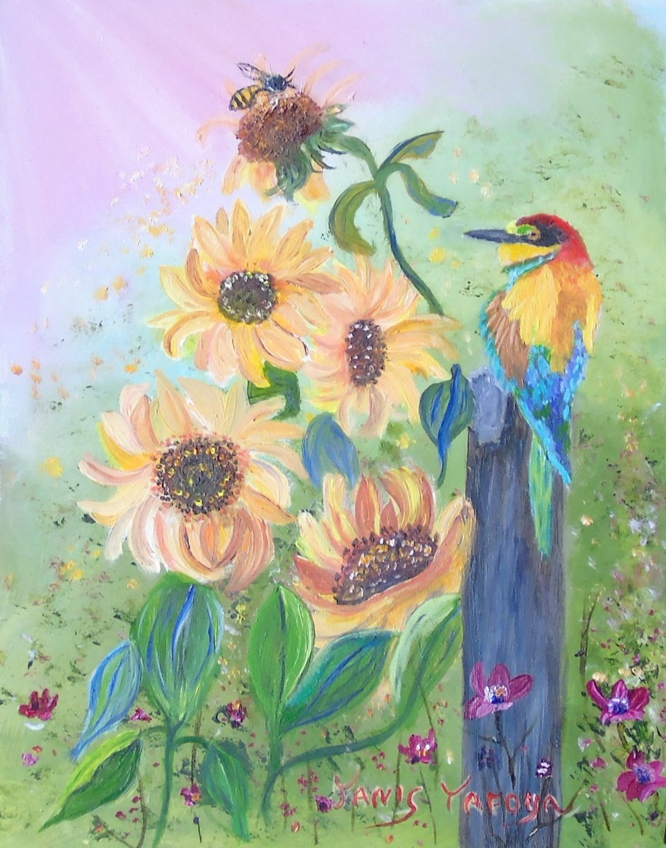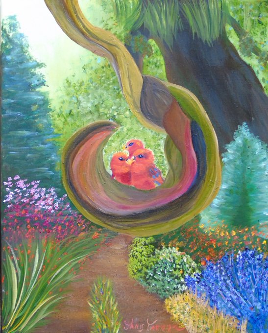 janistafoya.com #artbyjanistafoya #fantasy #impressionistic #Oil #flowers #bird #cat #tree