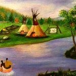 81 49 janistafoya.com #ArtbyJanisTafoya #teepee #canoe #river #trees #sheepskin #Starburst #oval #Beecatcher 19/09/13 08:38
