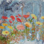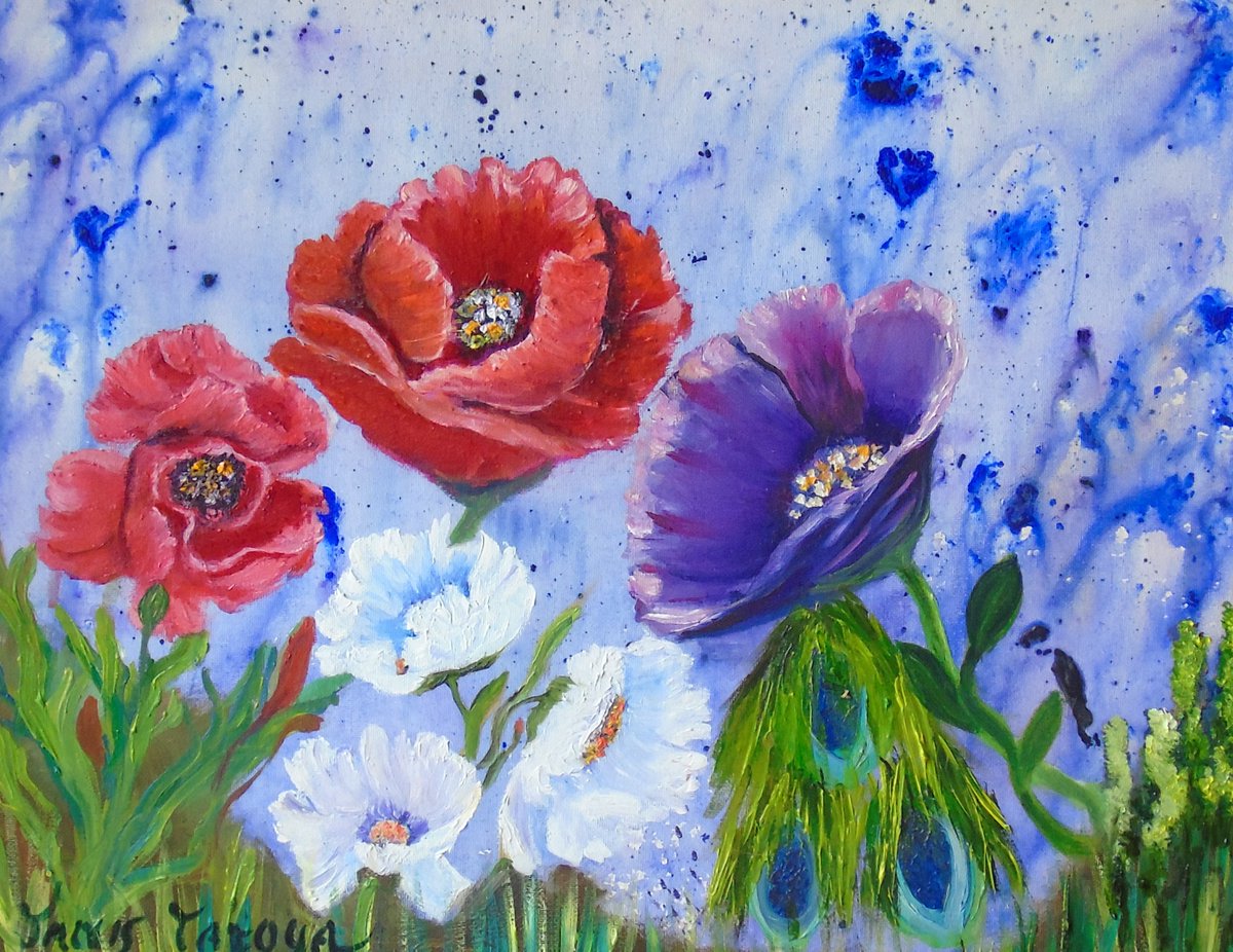 janistafoya.com/workszoom/3360… #Oilonpanel #Original #impressionistic #Poppies #Peacockfeathers #Freeshop