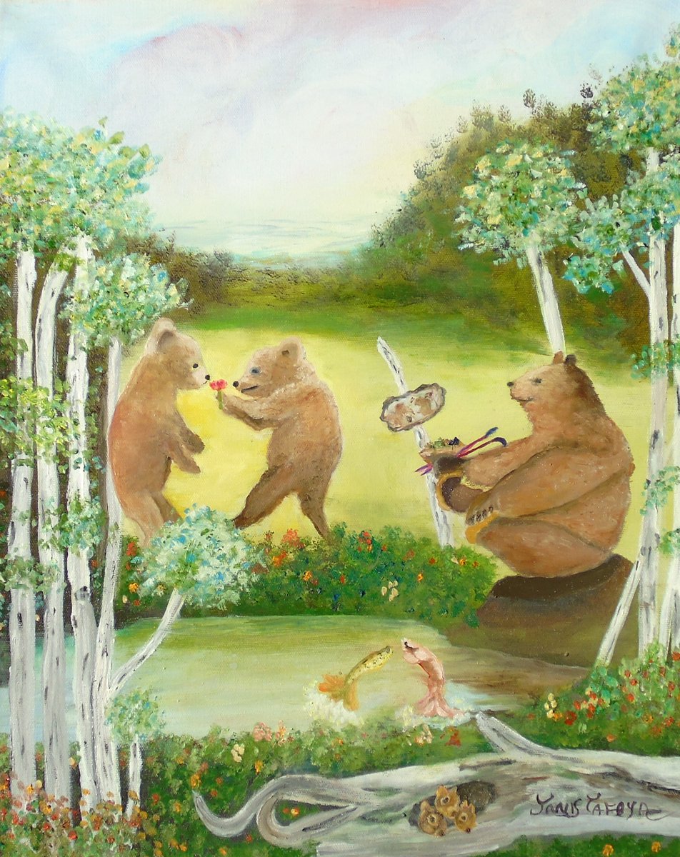 janistafoya.com #Artbyjanistafoya #Bears #spring #dancing #flowers #yucca #abstract