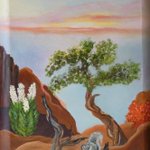 maggi.fineartstudioonline.com/workszoom/3680… #Southwest #Sunrise #yucca #Squirrel #TRee #oil #FReeShipUSA