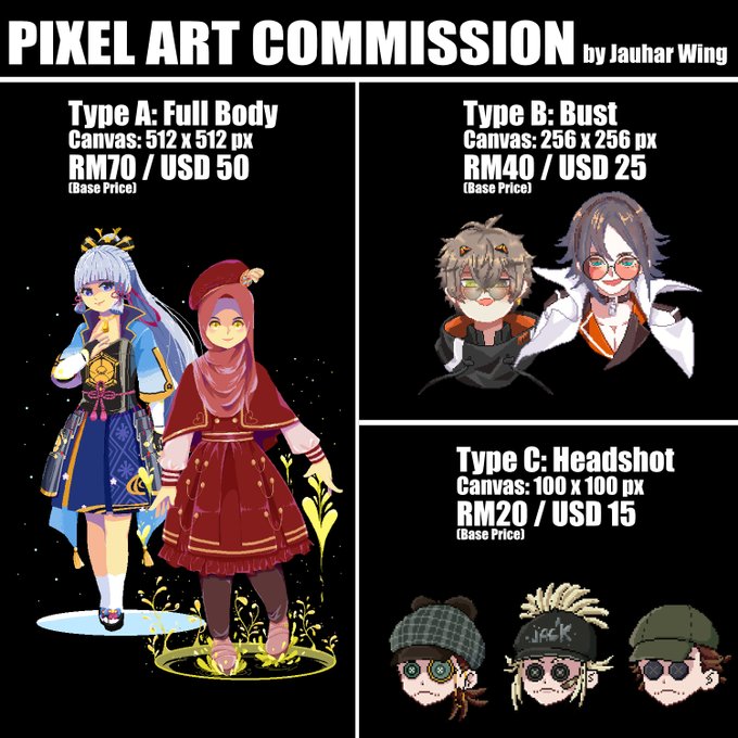 Here are some commissions that I can make for you #Commission #pixelart #perlerart #ドット絵 #vtuber