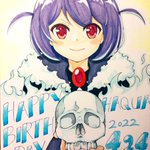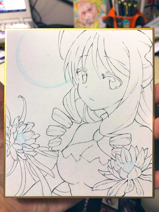 ようやく念願のアリス誕記念イラストを描けたので、次は去年のよんこま文化祭でタイムアップでカラーに出来なかった腰巻きアリス色紙のリベンジを絶対夏にするぞー! #kinmosa #アリス・カータレット生誕祭2022
