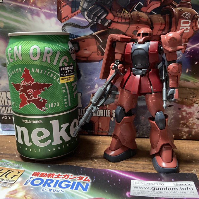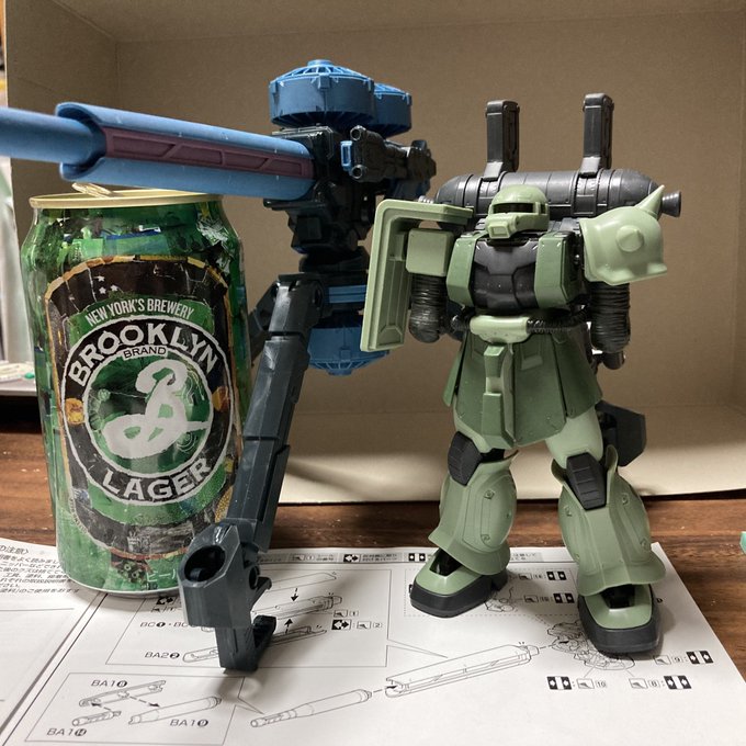 シャア専用ザクⅠ 素組み ベルト給弾式マシンガンがカッコイイ! #ガンプラ #ガンプラ好きな人と繋がりたい #ガンプラの画像貼るとrtされると聞いて #ザク #旧ザク #シャアザク #ハイネケン
