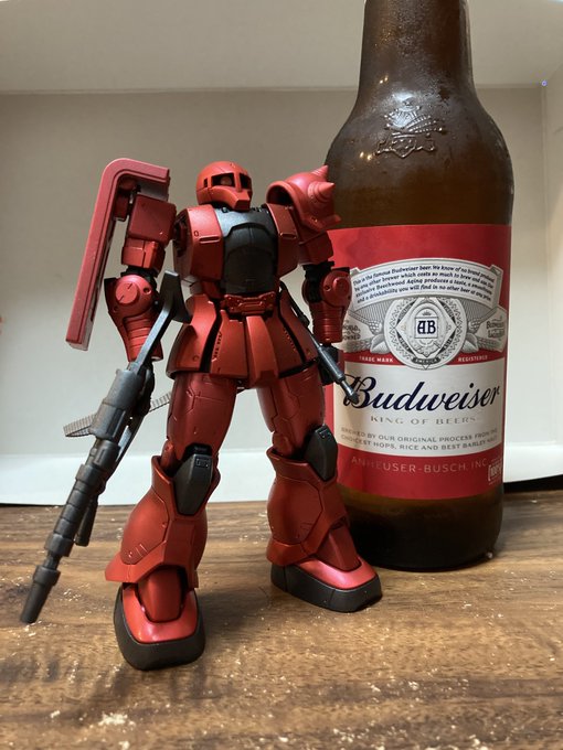 シャア専用旧ザク 艶消しキャンディで。下地にホワイトシルバーを使うとキレイ! #シャア専用ザクⅰ #シャアザク #ガンプラ #ガンプラ好きと繋がりたい #ガンプラの画像貼るとrtされると聞いて #バドワイザー