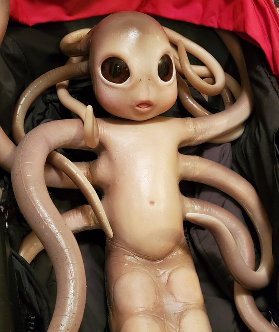 My alien doll is finally ready for sale! Hmu for more details. Pricing is $1,000-1,200 #artdoll #propreplica #rpf #meninblack #squidbaby #reborn #siliconedoll #alienprop #cosplay