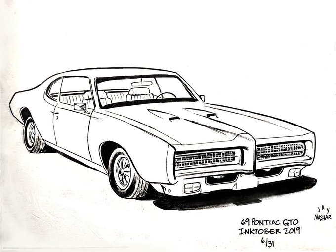 Obviously I need a finer point whiteout pen to do the grill... #inktober #inktober2019 #inkdrawing #69GTO #classiccars #musclecars #drawing