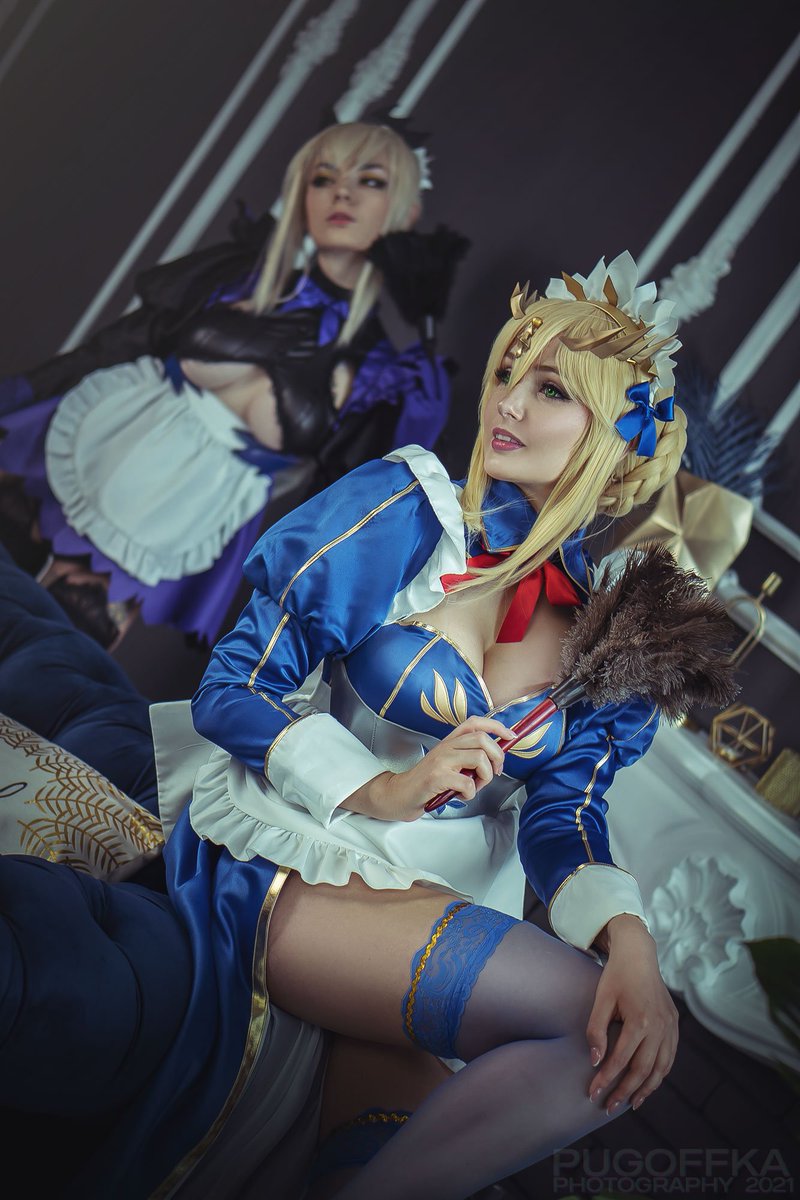 Fate Grand Order Maids Alter Arturia and Arturia cosplay by Bellatrix Aiden and LilG photos by Pugoffka #FGO #fgocosplay #fategrandorder #fategrandordercosplay #arturia #alterarturia #fateseries #fatecosplay