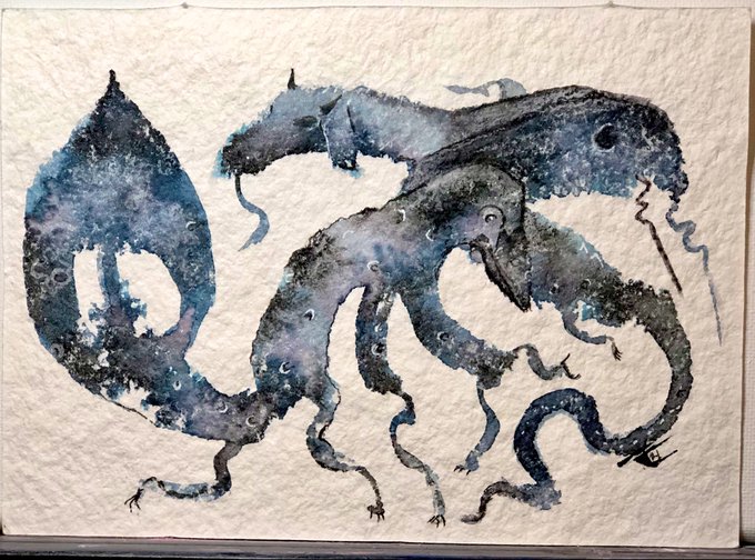 “The Duplicity of Unnecessary Intervention” It’s a long painting of 4 feet (121.9 cm) - 2 photos were better than one for details- additional full photos will follow… hope you enjoy 🙂#allegorical #painting #mixedmedia #liquitex #gouache #Inktober #acrylicpainting #bones