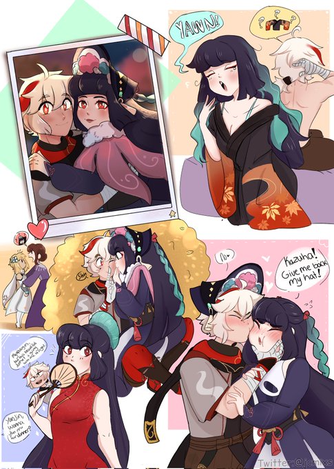 Leafy kissy! 💖🍃 Just did a Lil cute comic of these two cuz i like them 🥺✨ Hope you guys enjoy 👏👀✨ #原神 #Kazuha #Yunjin #Kazujin #genshinimpactfanart #GenshinImpact