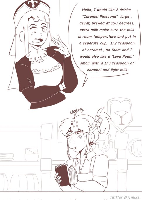 ☕CUSTOMER SERVICE (1/2)☕ I'm loving this recent event Makin drinks but it got me thinking of the customers and made this little comic✨ Hope y'all enjoy ✨ #原神 #GenshinImpact #LUMINE #Diluc #genshinimpactfanart #lumine_genshin_impact