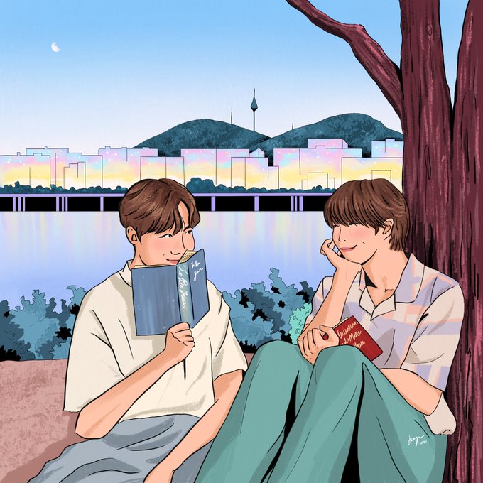 Was loosely inspired by @hopespiration ‘s To Be Yours fic to create this 🤣 #namseok by the han river - i love everything about the story she created and i wanted to create something that could belong in that world 😭💜✨ #btsfanart