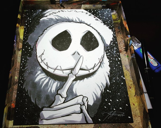 Jack skellington (Sandy claws) DAY 23 #inktober #inktober2020 #drawtober #drawtober2020 #arttrober #arttrober2020 #art #traditionalart #jackskellington #nightmarwbeforechristmas #jacksandyclaws #jdelgado #jeffdelgado