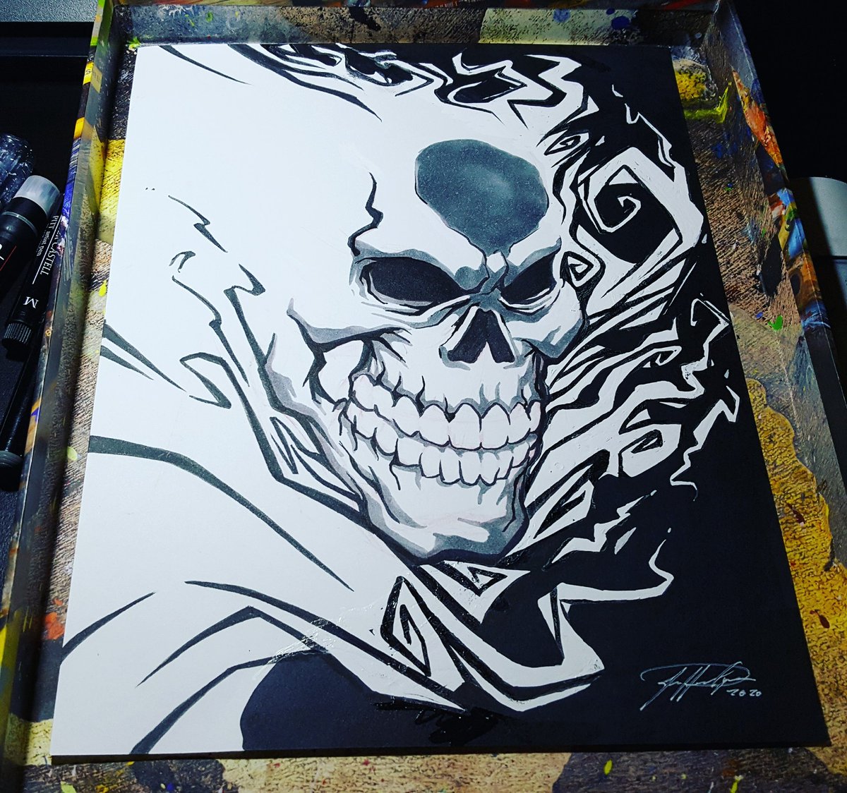 GHOST RIDER DAY 28 You can pick this bad boy up on my site too, jdelgadoart.com/original-art #inktober #inktober2020 #drawtober2020 #drawtober #arttrober #arttrober2020 #art #tradionalart #drawing #ink #marvelcomics #marveluniverse #ghostrider #jhonniblaze #jeffdelgado #jdelgado