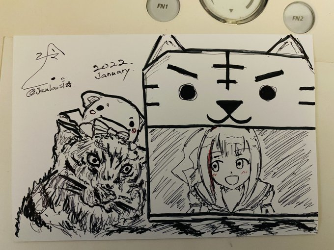 2 31 年賀状だったもの ♪とらっとらー らっとらーっらっとらー とらっとらっ♪ #とじょりんアート 22/01/13 17:15