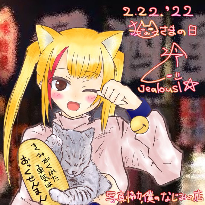 #とじょりんアート 左手招きの梨香ちゃん 右手招きの御猫さま 🍀役割分担🍀 2日のツインテは手持ちだったので 高めの位置で再び(片側見えてない 2月22日2022年 日本時間、 22時22分をお知らせします。